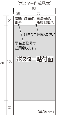 縦160cm、横90cmで作成をお願いいたします。 - 「演題名・所属・演者名」(縦20cm×横70cm)はご自身でご用意ください。